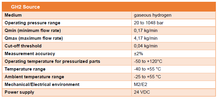 Technical data for GH2 Source – Calibratable hydrogen measurement system