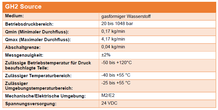 Technische Daten für GH2 Source – Eichfähiges Wasserstoff-Messsystem