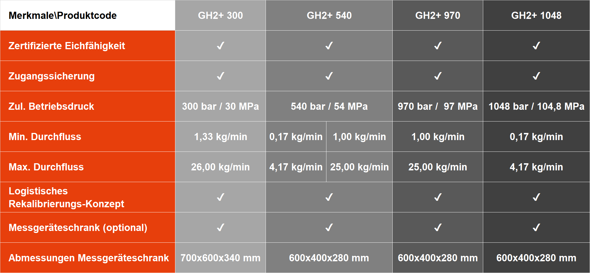 Die kompakte Systemserie GH2+ wurde entwickelt, um hochverdichteten Wasserstoff, welcher in Trailer-Fahrzeugen transportiert wird, zu messen und nachverfolgen zu können. Die Mengenmessanlage hebt sich durch eine temperaturunabhängige Durchflussmassen-Messung von Konkurrenzsystemen ab und garantiert, dank der Zertifizierung gemäß der Mess- und Eichverordnung, hohe Genauigkeiten und eine sichere Anwendung des Systems.