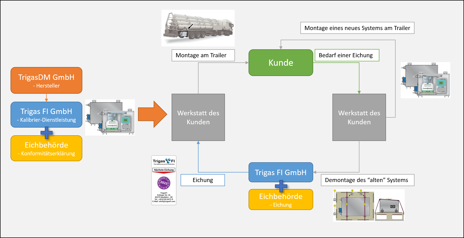 Wir sammeln die zurückgesendeten Einheiten in unserem akkreditierten Labor (TrigasFI). Sobald eine ausreichende Anzahl zur Eichung bereitsteht, organisieren wir eigenständig den Termin mit dem Eichbeamten. Der Eichbeamte kommt zu uns – und eicht alle Systeme in einem Durchgang.