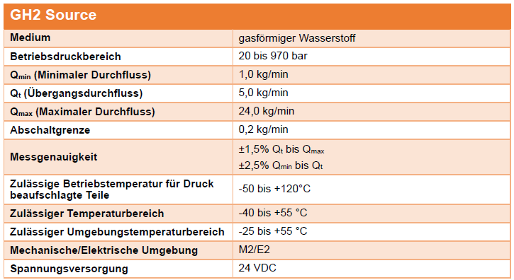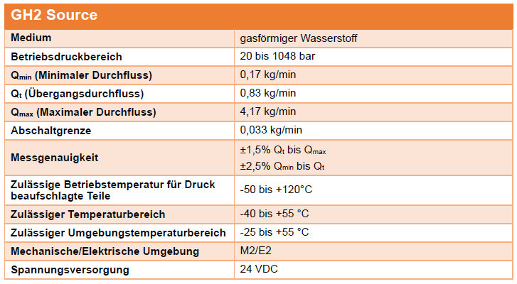 Technische Daten für GH2 Source – Eichfähiges Wasserstoff-Messsystem